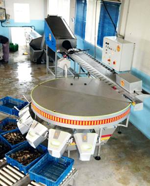 Nous sommes allés au chantier, j’ai pu voir le tapis de tri, la calibreuse et comment mettre les huitres en bourriche.