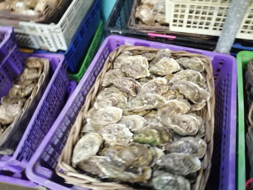 J’ai 6 collègues. Nous sommes plus pendant la période hivernale surtout lors de la périodes des fêtes de fin d’années. En été, il y a moins de vente car les huitres sont laiteuses (l’huitre crache des naissains pour créer des petits).