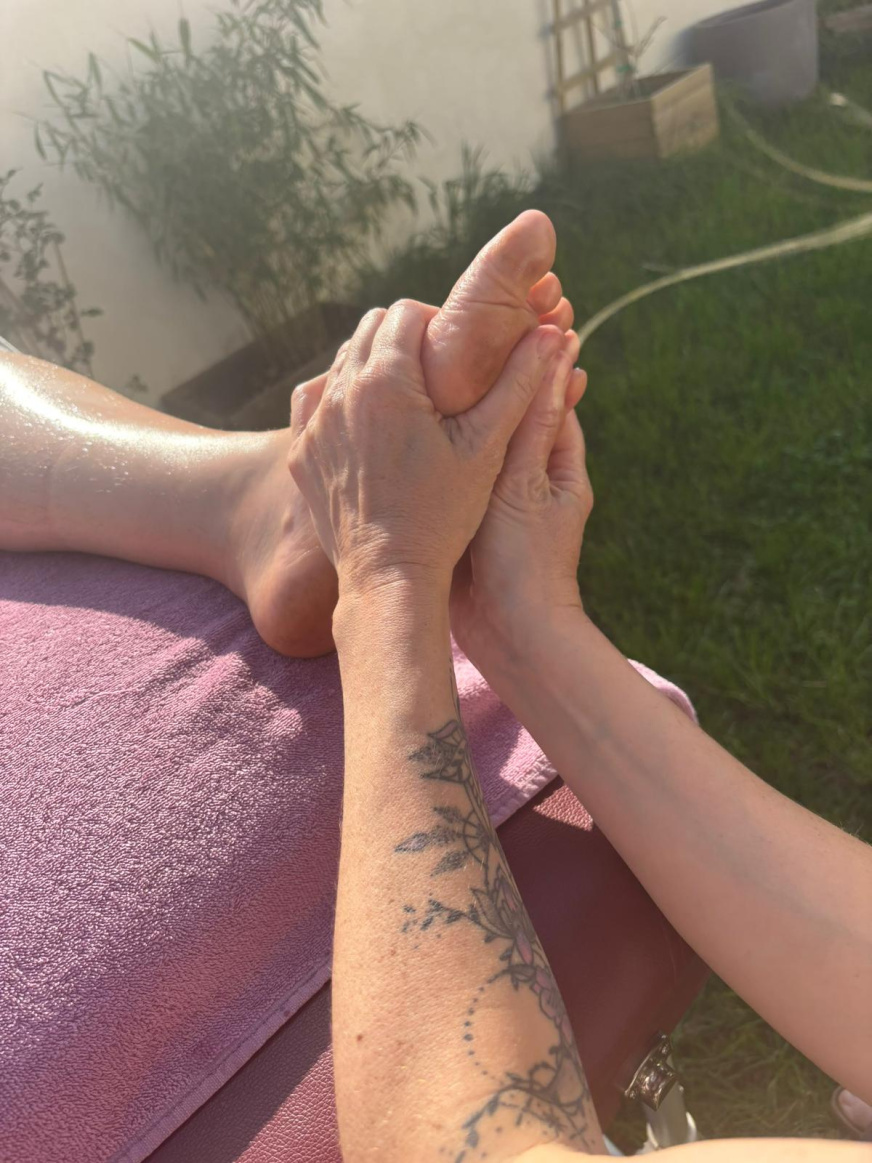 Elle est réflexologue et formatrice en réflexologie. La réflexologie est un massage des pieds qui vient d’Inde ou de Chine. Elle a appris dans une école selon la médecine indienne : l’ayurvéda.